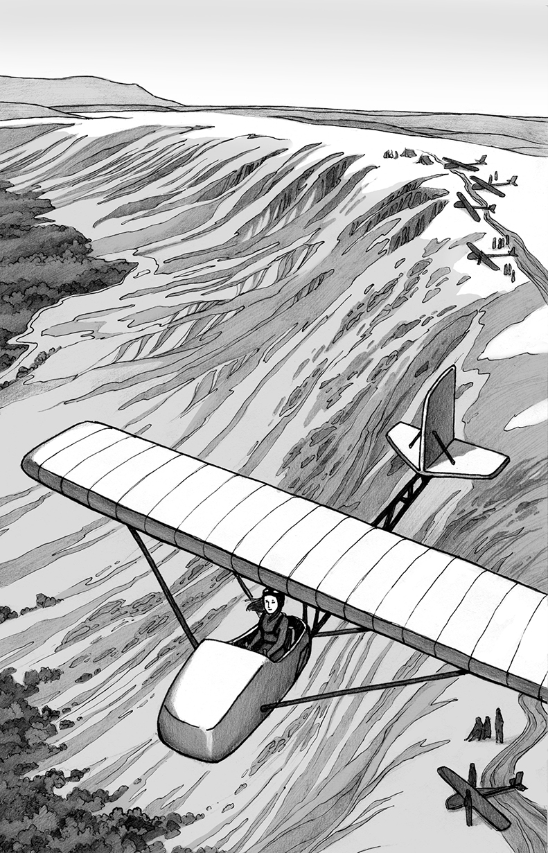 Минули годы. Шел как-то по местам этим путник. Солнце светило ярко. Ветер дул сильно. Очаровал человека склон-великан. Залюбовался он парящими над ним птицами. И крепко задумался. С чего это орлы, ни разу крыльями не взмахнув, часами летают над Узун-Сыртом? Было это в начале двадцатого века. А путника звали Константин Арцеулов. Необычный был человек. За что бы ни брался, все выходило отменно. Особенно хорошо рисовал. Дар этот, видно, перешел к нему от деда – выдающегося художника Ивана Константиновича Айвазовского. Но больше всего на свете он любил летать. Одним из первых в России он стал строить планеры – простейшие летательные аппараты без мотора для полета человека. Разгонишь такую птицу со склона ветру навстречу, и летишь. Вот беда только, что гор высоких да пригодных для полетов мало. Если бы перед горой была широкая долина, где ветер смог бы набрать силу. Еще нужно, чтобы был крутой склон. Натолкнется на него поток и понесется ввысь.