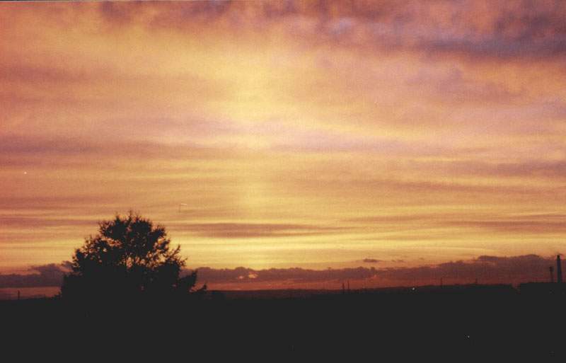 Вечером с Аллой Фёдоровной и Альбертом Владимировичем поехали посмотреть, как строится их новый дом. А возвращаясь обратно, наслаждались золотым закатом – внезапно всё небо целиком окрасилось в ярко-желтый цвет, и эта незабываемая картина сопровождала нас всю дорогу. По приезду я, не без риска свалиться, залез на крышу двухэтажного гаража и снял это чудо на фотоаппарат.
