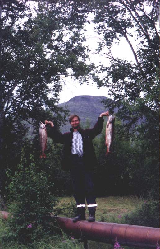 Пока ставил палатку, познакомился с Валентиной Ильиничной, его женой и Мишей – сыном. Валентина Ильинична предлагает мне разделаться с рыбой и приготовить её, я с удовольствием соглашаюсь, поскольку этот процесс представлял себе с трудом. К тому же красную рыбу необходимо пропаривать, потому что у неё встречаются глисты.