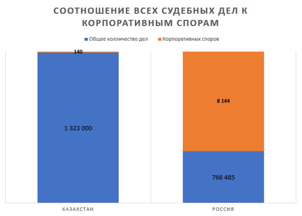 • в РК по статистики Верховного суда РК общее количество дел за 2017 год 1 323 000 дел из них корпоративных споров 140 дел;