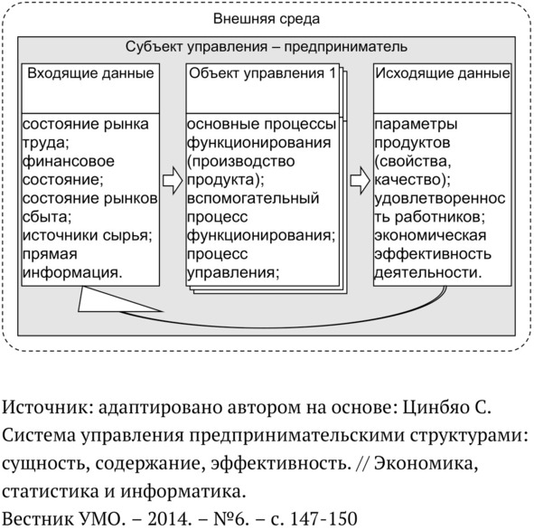 Из рисунка видно, что предприниматель, являясь владельцем нескольких объектов управления (субъектов предпринимательства), сам занимается сбором данных о состоянии внешней среды в разрезе производимых продуктов, сам принимает решения по всем параметрам деятельности бизнесов, а также пользуется всем результатами деятельности. В этой конфигурации базовым ограничением стратегических решений является дефицит нескольких ресурсов: времени, финансов и компетенций. Однако, если объем доступных финансов и компетенций можно увеличить, то дефицит времени будет ощущаться постоянно.