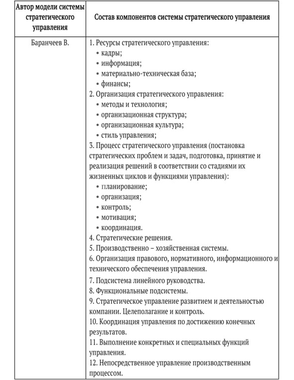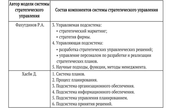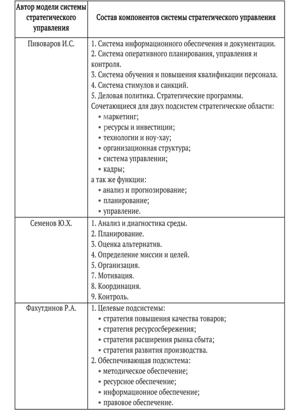 Каждая из предлагаемых моделей системы стратегического управления имеет как положительные моменты, так и недостатки.