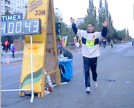 Итак, ПЕРВЫЙ МАРАФОН. 24 августа 2001 года. Стартовал в 6.00. Сказалась привычка все лето вставать рано. Погода для этого времени года выдалась удивительно холодная. Было не более 10 градусов тепла. Первые километры я буквально замерзал. Потом согрелся и даже разделся. В целом субъективное ощущение было хорошим, праздничным, что ли. Я чувствовал, что возьму дистанцию, и это мне удалось. Из группы поддержки и благодарных зрителей была только моя девушка, которая пришла к 9-ти утра. С Альбертом заключать пари я больше не стал, поскольку чувствовал, что это будет нечестно по отношению к нему. В этот раз я был уверен в успехе. В последней трети дистанции лицезрел тренировку саратовской женской баскетбольной команды «Виктория». Мне показалось сначала, что среди них есть и парни, но потом подруга разуверила меня. – Они только выглядят так… мужественно. Хотя среди команды есть весьма и весьма симпатичные – это уже мое наблюдение. Они тренировались прямо на дорожках стадиона и бедняжки, как же их мучил тренер. Надо мной тренера не было, но мучения были не меньшими. А потом – финиш. Почему-то он был достаточно прозаичен. Неужели свершилось! В тот момент так и не смог до конца осмыслить результат полуторагодичных усилий. Счастье! Счастье ли? Время – 3 часа, 42 минуты. Секунды не отмечал.