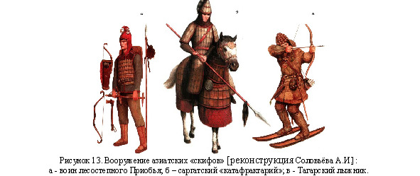 Археологических культур скифского круга известно довольно много. На пространстве от Карпат до Ордоса, а возможно и до Сихотэ-Алиня, скифы вовлекли в сферу влияния и без того полиэтнической «империи» немало изначально не номадных племен, живших на окраинах степей (рис. 13). Отличаясь в деталях, «культуры скифского круга» имеют и много общего – это предметы вооружения, конская упряжь и, наконец, «звериный стиль» в искусстве, что свидетельствует об «общности этих культур, основанной на близости хозяйственного уклада и родстве идеологий» [Соловьёв А. И.].