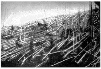 Метеоритная гипотеза Тунгусского феномена не выдержала проверки, так как на месте взрыва в Тунгусской тайге «стоячий лес» находился в эпицентре. В то же время было установлено, что вывал леса был произведён взрывной волной. Область поваленного леса имеет своеобразные контуры – нечто вроде гигантской бабочки – и сложную структуру. В целом деревья лежат радиально, с корнями, обращёнными к эпицентру. Однако на границе «стоячего леса» в эпицентре заметны отклонения от радиальности, что красноречиво свидетельствует о спиральном движении газообразной плазмы, начиная от эпицентра. На границе Тунгусской катастрофы нет ни метеоритных кратеров, ни метеоритного вещества. В то же время непосредственно под предполагаемой траекторией «небесной гостьи» существенно повышена термолюминисценция минералов (их способность выделять при нагреве запасённую энергию). Причиной этого была жёсткая радиация, излучавшаяся во время полёта тела.