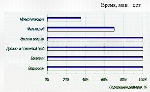 Рис. 17. Выживаемость различных организмов в воде с различными концентрациями дейтерия.