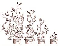 Рис. 18. Поливка помидорной рассады 30, 50 и 60%-ной тяжёлой водой замедляет рост растения (по данным Креспи и Катца, 1972).