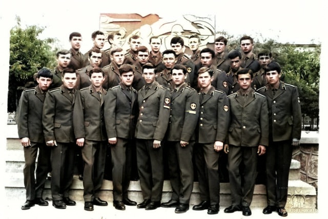 Как оказалось, она жила в соседнем квартале, совсем рядом с моим домом. Мы пошли с ней гулять, зашли к ней домой, выпили немного шампанского и снова ушли. Что говорить, конечно мы целовались до одурения и на завтра, договорились встретиться. На следующий день она пришла на свидание с перебинтованным горлом. Оказывается, я оставил там столько засосов, что места не было живого. Ей пришлось притвориться, что подхватила ангину. Оставшиеся дни отпуска мы проводили вместе, пока ей не пришлось уехать по делам в Ташкент. Догуляв отпуск, я вернулся в училище и продолжил учёбу. Служба уже не так угнетала, как раньше, да и опыт накопился. Я был на хорошем счету у командования. Учёба удавалась, военная и физическая подготовка, были на должном уровне. В виде поощрения за мои заслуги, меня назначили караульным поста №1 и отныне, я нёс караульную службу у знамени училища, что являлось почётной обязанностью. Я не скажу, что стоять у знамени легче, но всё-таки под крышей и в тепле. Кроме этого, я научился спать стоя, как уже ранее, научился спать в движении. Мы уже учились водить танки, стрелять из танкового пулемёта и из пушки. Почему -то у меня, очень хорошо получалось стрелять из танка и в дальнейшем, на всех стрельбах, я постоянно выступал в роли наводчика, за всех членов экипажа. А экипаж состоял из 4-х человек: командира танка, заражающего, наводчика и механика-водителя. Механик –водитель всегда был из числа военнослужащих танкового батальона обслуживания учебного процесса, сокращённо ТБОУП, остальные роли исполняли курсанты. Материальную часть танков мы учили на совесть. Начальник кафедры говорил нам: «По данному предмету, не может быть других отметок, кроме как отлично и плохо. Либо вы сможете быстро исправить поломку, либо не сможете вовсе. Также и по огневой подготовке – либо мы уничтожили врага первым выстрелом, либо он нас, потому что второй раз выстрелить не удастся». Исходя из этого, нам ставили или «2» или «5». Весной я вдруг, совершенно неожиданно, даже для себя, отличился в спортивных соревнованиях. Я взял сразу 4 первых места по училищу, в следующих видах: метание копья, бросание гранаты, прыжки в высоту и прыжки в длину. Кроме того, два вторых места, уже даже и не упомню по каким видам. После подведения итогов соревнования, на церемонии вручения наград, я, к удивлению всех присутствующих, и восторгу командира нашей роты, шесть раз выходил из строя, для получения диплома из рук начальника училища. Такой случай должен был быть отмечен командованием роты. Через пару часов, уже перед строем роты, командир роты объявил мне благодарность и предоставил 10 дней отпуска. К сожалению, последнее не могло быть исполнено, в условиях военного училища и осталось лишь приятным воспоминанием. Одновременно, моему отцу было отправлено, так называемое «Письмо на Родину», где его благодарили за достойное воспитание сына. Это мероприятие было очень почётным и в сущности, приравнивалось к получению медали. С приближением праздника «День Победы», мы начали подготовку, к участию, в ежегодном военном параде в Ташкенте. Согласно существующей практике, парадные коробки формировались из 200 человек – 20 в ширину и 10 в глубину. От нашего училища должны были выступить две коробки, по одной от каждого курса. В коробки набирались самые высокие и, понятное дело, хорошо шагающие, курс