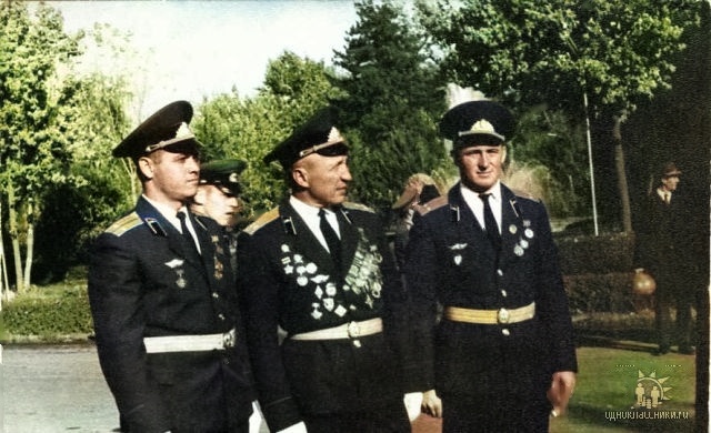 Фото. Наши командиры: л-т Гребенников, полковник Кошечкин и л-т Судейкин, на параде ко Дню Победы в Ташкенте. !971 год.
