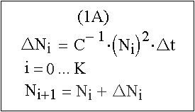 Введем сеточную функцию дискретного аргумента, вычисляемую в узлах сетки. В момент t1 = t0 + Δt найдем прирост численности ΔN0 по (1А) и определим ее новое значение N1 = N0 + ΔN0.