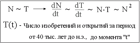 Если бы развитие человечества как системы происходило циклически, при неизменной длительности таких циклов, а численный показатель уровня развития S с каждым циклом увеличивался в одно и то же число раз, то рост численности (с учетом N ~ S) был бы экспоненциальным. Т. к. в действительности, по мнению целого ряда исследователей, историческое время ускорялось и длительность глобальных циклов эволюции и истории не оставалась неизменной, а сокращалась по закону геометрической прогрессии, то есть все основания утверждать, что рост населения мира был гиперболическим.
