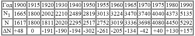 «В Таблице 1 показано поведение мировой демографической системы от 1900 до 1990 г., когда она вернулась на прежнюю траекторию роста, практически за 20 лет компенсировав потери на 100 % за 40 лет войн.