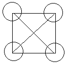 Рис. 4. R = 1, сеть содержит 4 узла, число связей равно шести.
