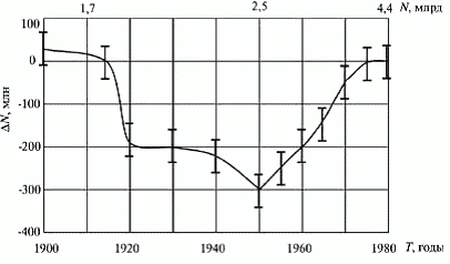 Тот факт, что у гипербол роста этих показателей точки сингулярности различны, можно объяснить, во-первых, недостаточной точностью их определения, т. е. ошибками, связанными с неполнотой и неточностью данных и, во-вторых, возможно, менее строгими требованиями, которые программа эквифинальности предъявляет к их росту в течение цикла. Тем не менее все различия укладываются в интервал, длительность которого не превышает половины характерного времени Капицы.