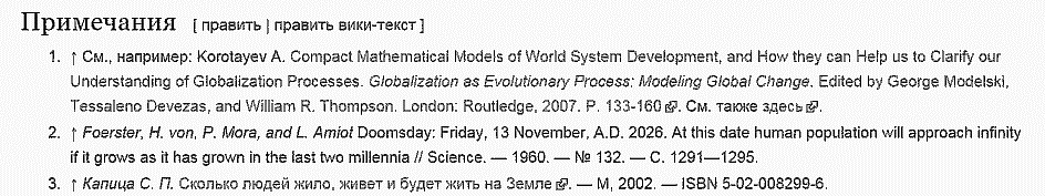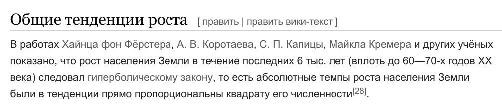 Рис. 1. Фрагмент страницы «Закон гиперболического роста численности населения Земли» в русскоязычной Википедии на ноябрь 2015 года.