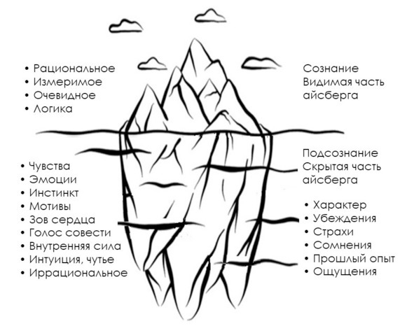 Рис. 2. Метафорическое представление сознания и подсознания в форме айсберга