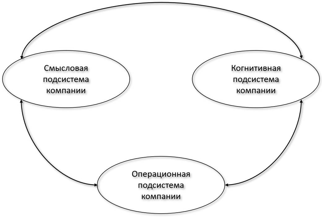 Кроме того, при описании смысловой подсистемы компании и механизмов ее взаимодействия с остальными подсистемами компании мы будем обращаться к концепциям современных направлений психологии.
