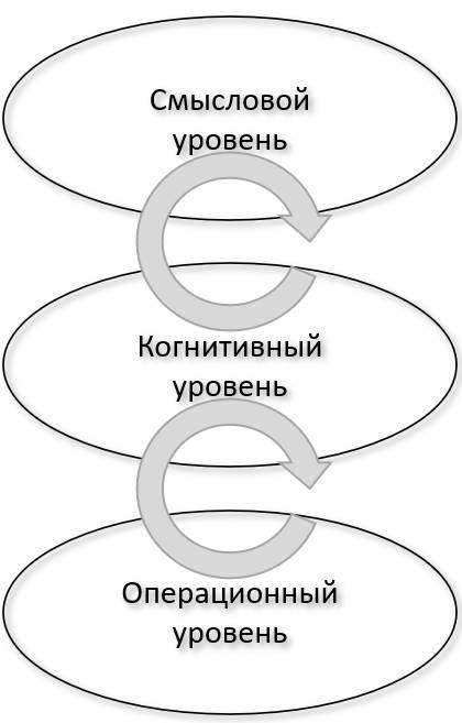 Если мы рассмотрим все три уровня как взаимодействующие между собой, то придем к триединому контексту восприятия, в рамках которого каждый из уровней (смысловой, когнитивный и операционный) должны влиять друг на друга и изменять друг друга.