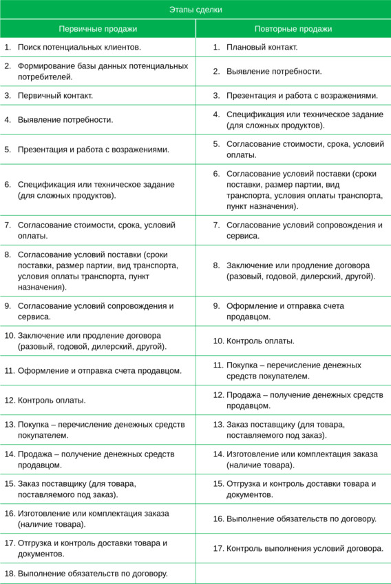 Таблица 2. Сравнение этапов сделки, для первичных и повторных продаж.