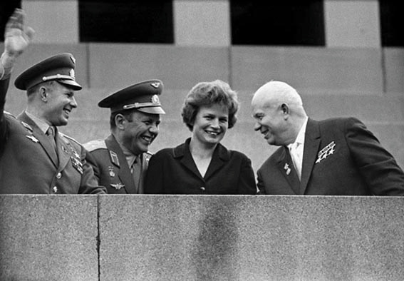 Юрий Гагарин, Павел Попович, Валентина Терешкова и Никита Хрущёв