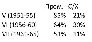 – продолжавшейся политике перераспределения средств из легкой промышленности и социальной сферы в пользу индустриальных отраслей;