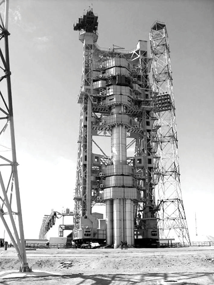 И всё же один раз нам удалось побыть на макушке «Протон-К» в сборе. Нам нужно было провести проверку влияния ядерного отеплителя Лунохода на наш прибор. Нас привезли на 81-ю площадку. По дороге мы проезжали полуутопленные хранилища ракетного топлива. Из вентиляционных труб легко клубился рыжий дымок ракетного топлива (или окислителя?). Нас на лифте подняли на макушку ракеты, где был установлен объект Е8 (Луноход и посадочная ступень). День был ясный и безветренный. Вокруг расстилалась полустепь, полупустыня. Почему-то было не страшно, хотя я и боюсь высоты. Проверка прошла достаточно быстро и дала положительный результат.