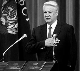 В декабре 1991 г. РСФСР была переименована в Российскую Федерацию (РФ). Россия объявила себя продолжателем членства СССР в международных институтах, взяла на себя долги и активы СССР и объявила себя собственником всего имущества СССР за границей. 25 декабря 1991 г. президент СССР М. С. Горбачев объявил о прекращении своей деятельности на посту президента СССР «по принципиальным соображениям», подписал указ о сложении с себя полномочий Верховного главнокомандующего Советских Вооруженных сил и передал управление стратегическим ядерным оружием президенту России Б. Ельцину. Так начиналась либеральная революция в России.