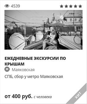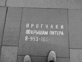 На Невском проспекте и прилегающих к нему улицах на асфальте написаны номера телефонов гидов, с которыми можно связаться и записаться на тур по крышам. Помимо такой «наружной» рекламы существует большое количество сайтов, где гиды предлагают полюбоваться видами нашего замечательного города. Стоимость похода на крышу на 1 человека составляет 500-600 рублей. Это доход гида. Гидов много и каждый из них водит свои группы. Группа «гуляющих», в среднем, состоит из 8-10 человек.