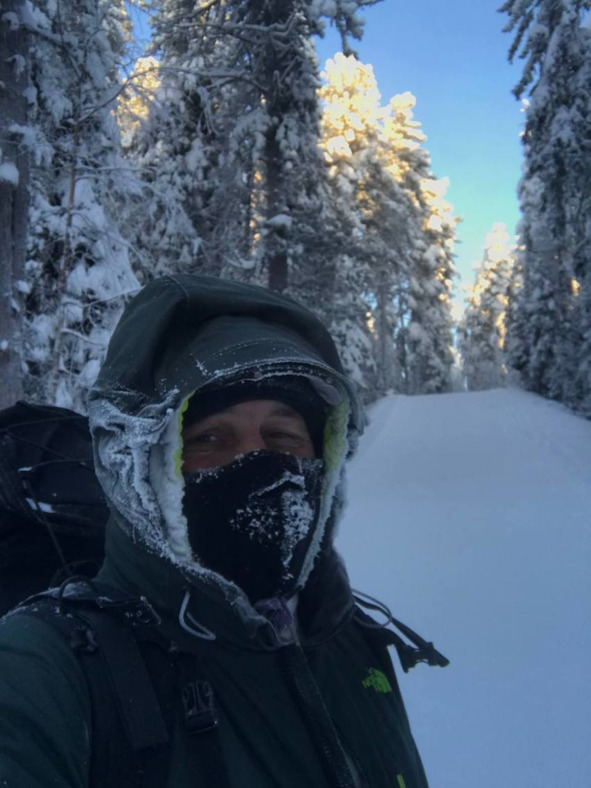 Через, примерно, 2 км пути, многие туристы стали снимать «лишние слои» и тем самым избегать перегрева тела. Как бы это не казалось нелепо, но это правда – при минус 23 градусах мы стали снимать «лишние вещи» добиваясь комфортной для похода температуры.