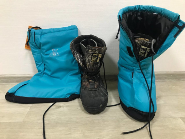 Крепление для лыж приобретено в двух разных вариантах (пластик и ткань). Бахилы на обувь были заказаны на Озоне в срочном порядке, и они подоспели вовремя.