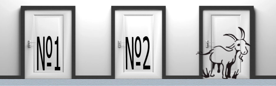 Парадокс Монти-Холла. Эта игра напоминает «напёрстки». Те, кто жил в 90-х, часто с ними сталкивался среди больших скоплений людей. Если в напёрстках вы всё же имеете шанс уследить за шариком сквозь манипуляцию рук, то в подобной американской игре психологические манипуляции с вами будет делать ведущий. Итак, вы стали участником игры. На сцене три двери. За двумя из которых находятся козы, а за одной автомобиль. Вы делаете выбор: дверь № 1, но ведущий, который знает, где автомобиль, открывает другую дверь, № 3, чтобы усилить психологический эффект, за которой находится коза, и предлагает вам изменить свой выбор в пользу двери № 2. Увеличатся ли ваши шансы выиграть авто, если вы измените свой выбор?
