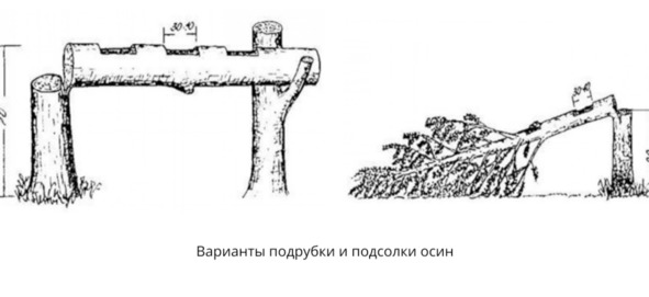 На рисунке ниже представлены варианты подрубки и подсолки осин.