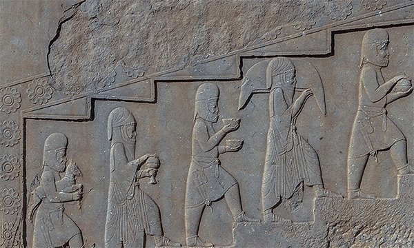 Побеждённые народы приносят дань персидскому царю. Персеполь
