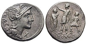 Серебряный денарий (вес – 4,5 г, первоначально был равен 10 ассам)