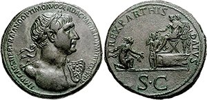 Серебряный сестерций Траяна (вес – 1,14 г)