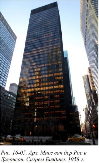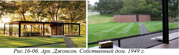 Но такое абсолютное единство жизни творческой и жизни личной характерно далеко не для всех архитекторов и дизайнеров. Очень наглядный пример – собственный дом выдающегося архитектора 20 века Филипа Джонсона, которого называют одним из самых ярких пропагандистов архитектуры из стекла и стали. Наиболее известным его сооружением стал спроектированный совместно с Миес ван дер Рое знаменитый Сигрэм Билдинг (Рис. 16–05).