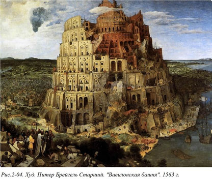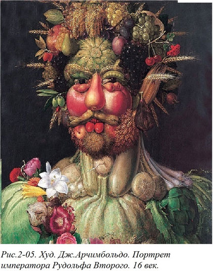 Сказанное целиком применимо и к прекрасным живописным работам В. Локтева, к примеру его картине «Город-скульптура» (Рис. 2–03). В данном случае название могло быть и другим. И даже не обязательно архитектурным. Любым. Самое правильное, видимо, – «Композиция №…». И опять же это произведение графики, но никак не архитектуры. Причем от «неархитектурности» их роль как элемента культуры не становится менее значительным. Но причислять к архитектуре любые изображения архитектурных сооружений и их деталей неправильно в принципе. Мы ведь не относим к архитектуре известную картину Питера Брейгеля Старшего «Вавилонская башня» (Рис. 2–04). Еще более наглядная аналогия – творчество итальянского художника 16 века Джузеппе Арчимбольдо. Он создавал живописные портреты, составленные из изображений овощей, фруктов и других предметов (Рис. 2–05). Несмотря на то, что на картине изображены съедобные объекты, никому не придет в голову отнести подобное произведение к области кулинарии. Так что странными мне кажутся утверждения некоторых критиков, пытающихся причислить произведения наших «бумажников» не к графике, а к архитектуре. Только как издевку можно рассматривать запись в интернете: «Сколько калорий в картине Арчимбольдо?» Точно так же бессмысленным был вопрос Бродскому: «Что из своих бумажных проектов Вы бы в самом деле построили?»