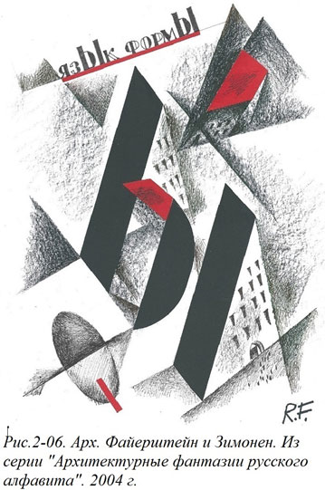 Не столь важно, что «бумажники» в свое время окончили один из архитектурных ВУЗов. К примеру, серию рисунков под названием «Архитектурные фантазии русского алфавита», создали выпускники Московского Архитектурного Института Р. Фаерштейн и Л. Зимонен (Рис. 2–06).