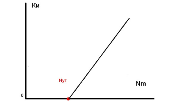 В общем виде её можно представить в виде положительного градиента со сдвигом относительно начала координат.