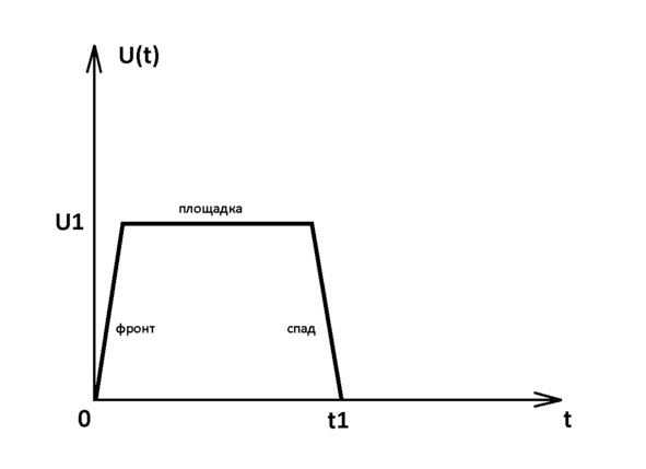 Изменение напряжения из состояния логического нуля в состояние логической единицы (фронт) и наоборот (спад) в идеальном импульсе происходит за временной интервал с нулевым значением, в результате чего скорость изменения фронта/спада импульса стремится к бесконечности.
