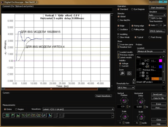 При использовании IBIS модели отечественного процессора 1892ВМ15, переходная характеристика будет иметь другой вид.