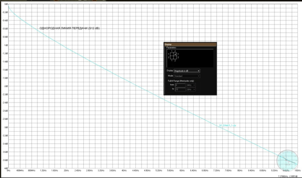 Анализ параметра S12 однородной микрополосковой линии передачи