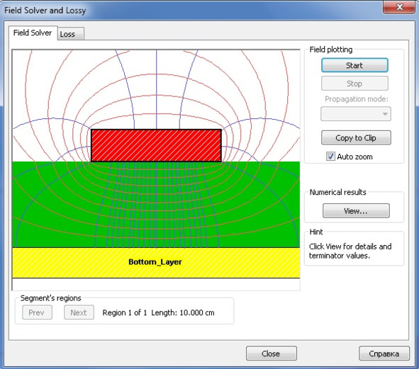 Рис. 8 Краткий набор характеристик сегмента однородной микрополосковой линии передачи