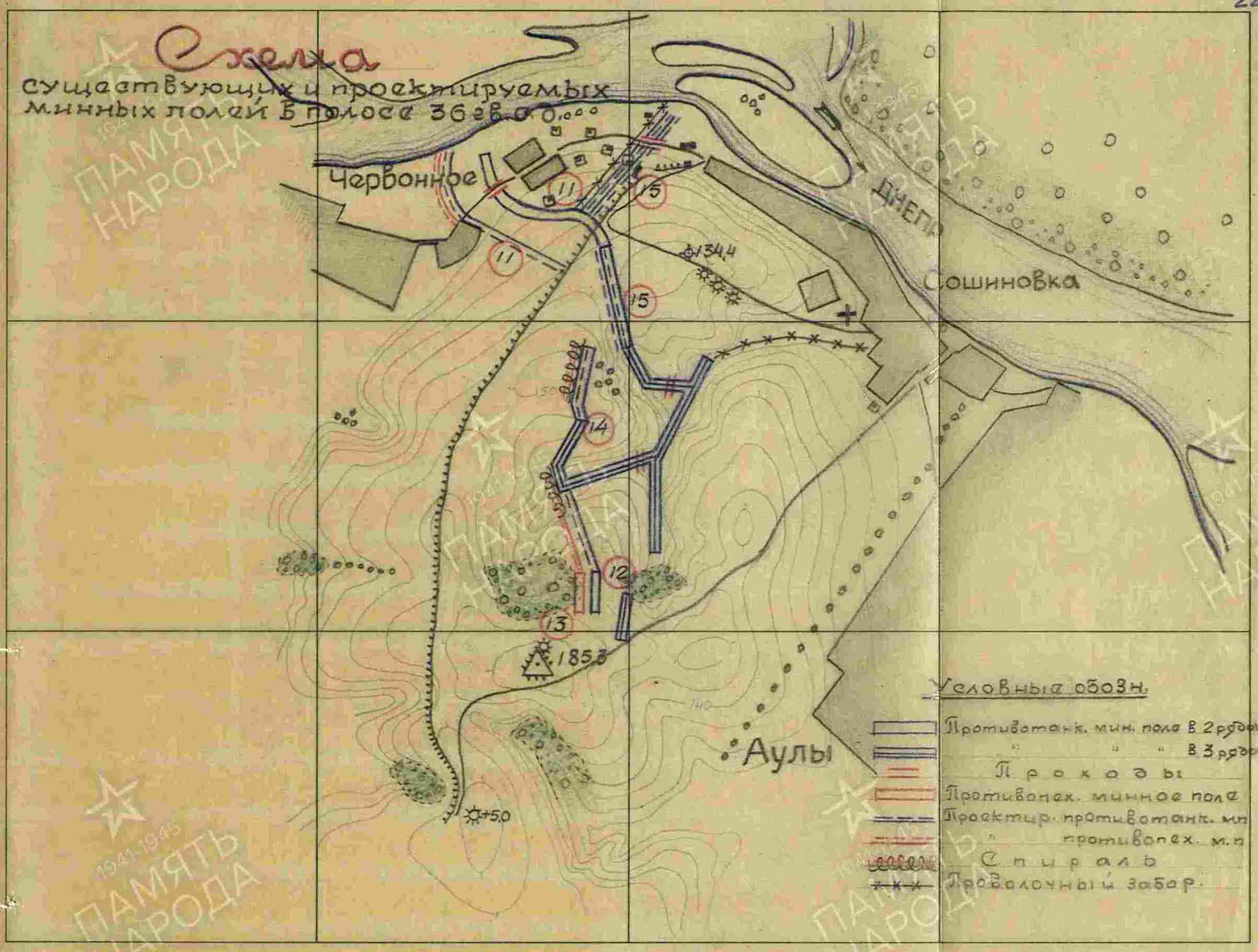 Вот для иллюстрации карта инженерных сооружений 36 СД на 10.10.43 (рис. 7) [4.]