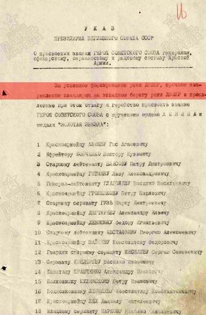 Почему после форсирования Днепра были награждены орденами только 15 выживших разведчиков, а погибшие и умершие от ран – нет?
