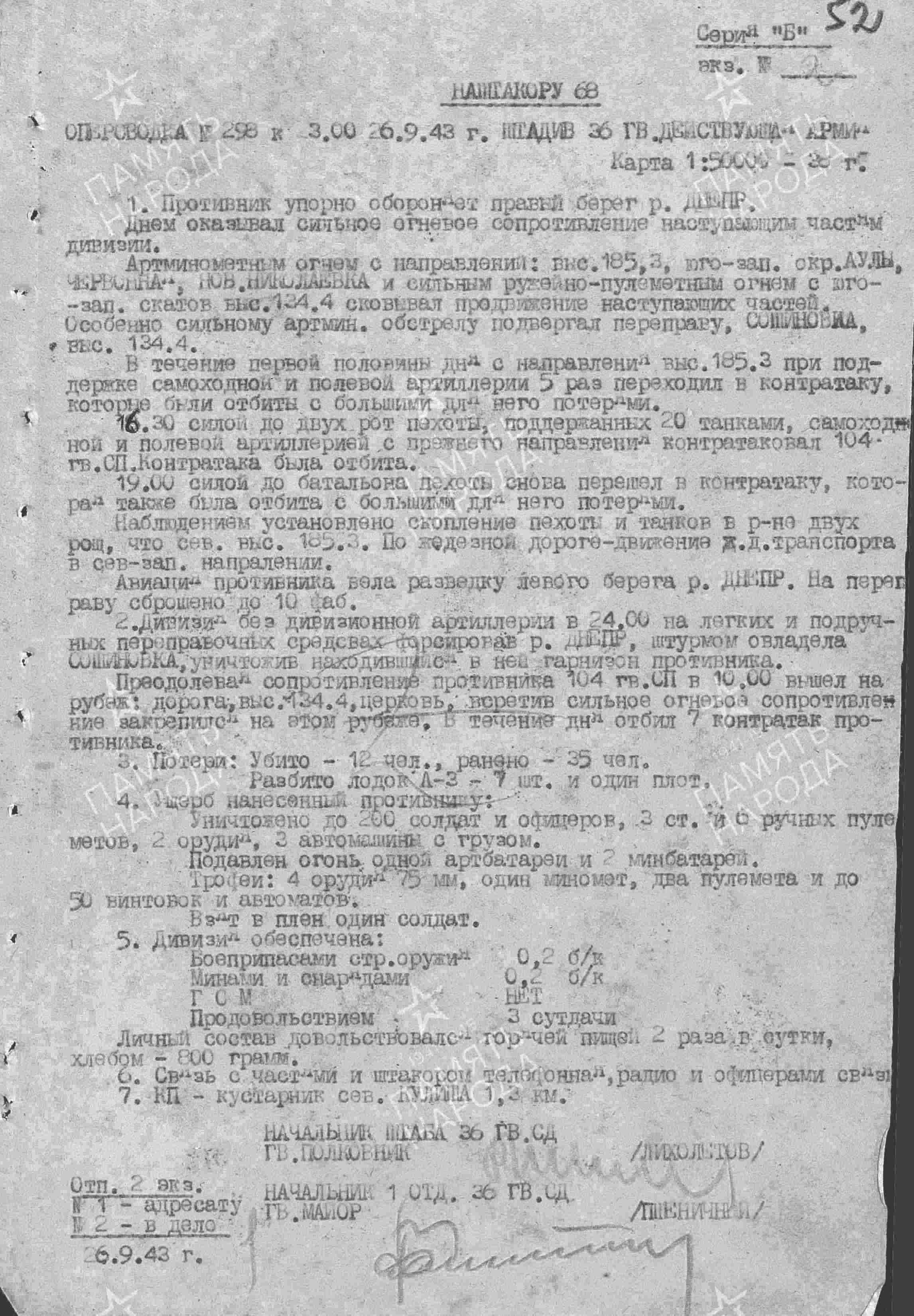 d3. Боевое донесение 36 СД от 26.09.43 г