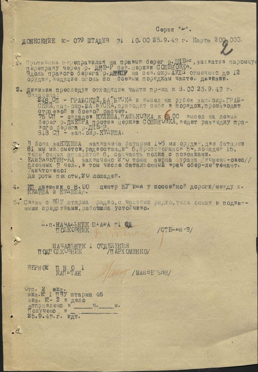 4. Боевое донесение № 079 штаба 31 СД от 25.09:10-00