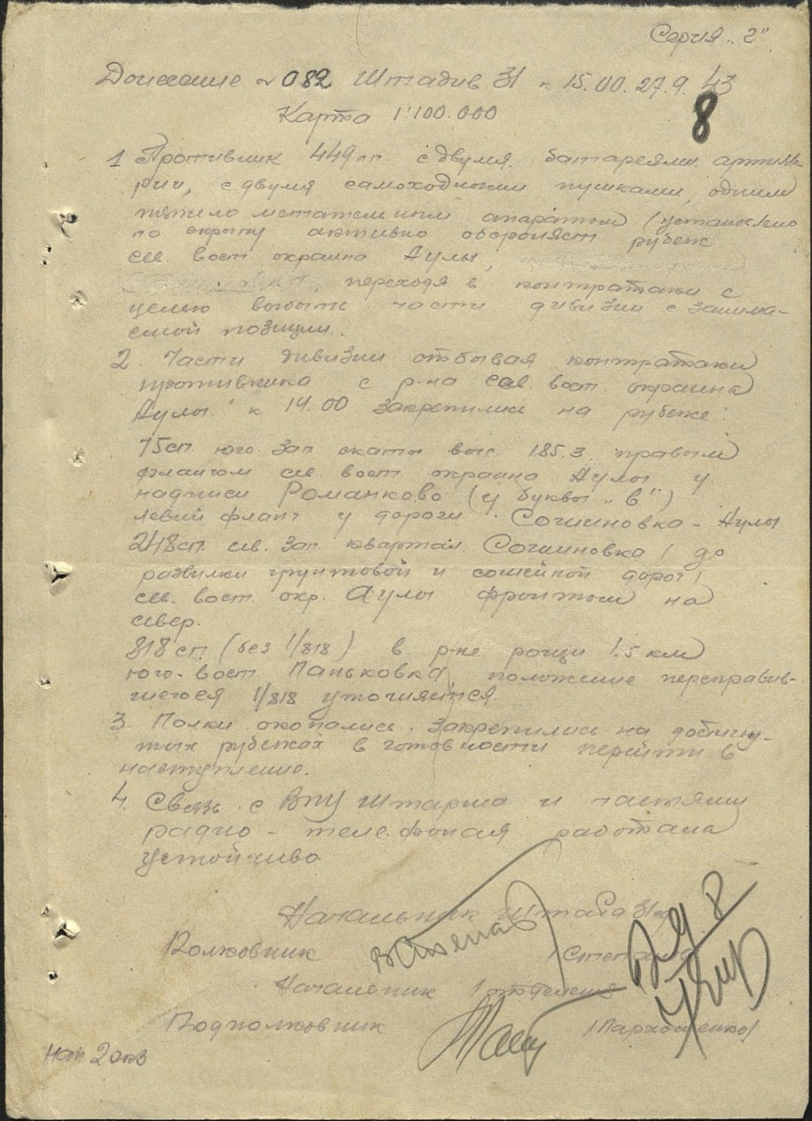 20. Боевое донесение № 16/оп 26.09.43 от 8-30 утра. 46 А