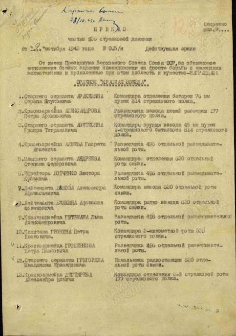 d11. Приказ 236 СД № 015/Н от 09.10.43 года