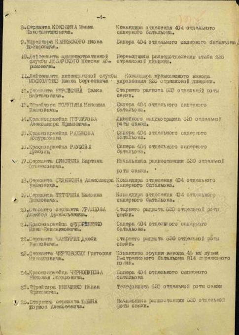 10. Приказ штаба инженерных войск 57 А № 0835 от 11.10. 43 г.